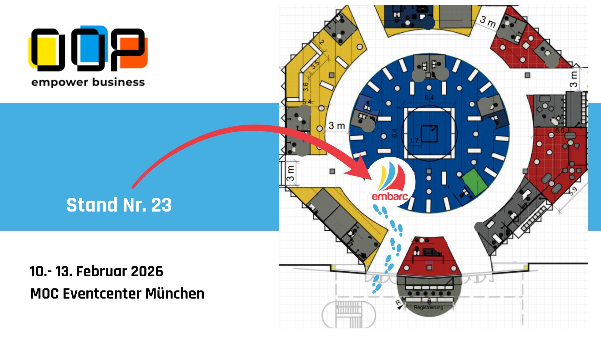 Die OOP 2026 findet im MOC Eventcenter in München statt. Ein kleiner Lageplan zeigt, wo ihr uns vor Ort findet. Wir freuen uns auf Euch!
