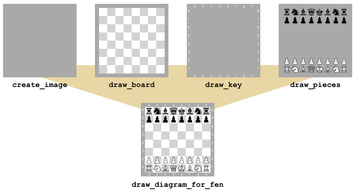 Dank Flask und Pillow ist nicht all zu viel zu tun. Der überschaubare Python-Quelltext des chess-diagrams-Moduls liegt auf GitHub. Ich habe ihn auf zwei Dateien aufgeteilt.